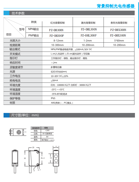 PZ系列背景抑制光电传感器
